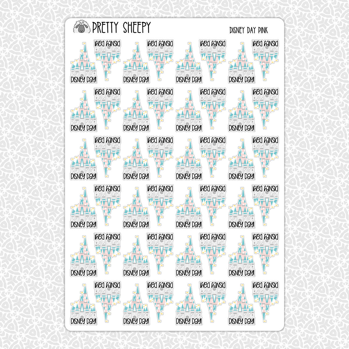 DisDay Pink WDW Castle Stickers (2 size and sheet options)